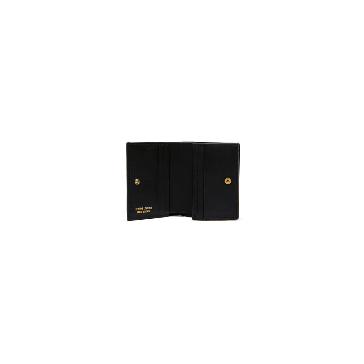 Mini-Lederportemonnaie mit Clip, kompakte Größe und goldenem Logo. Innenes Münzfach mit Reißverschluss. Auf den Seitenflächen erwachen die saisonalen Drucke zum Leben.