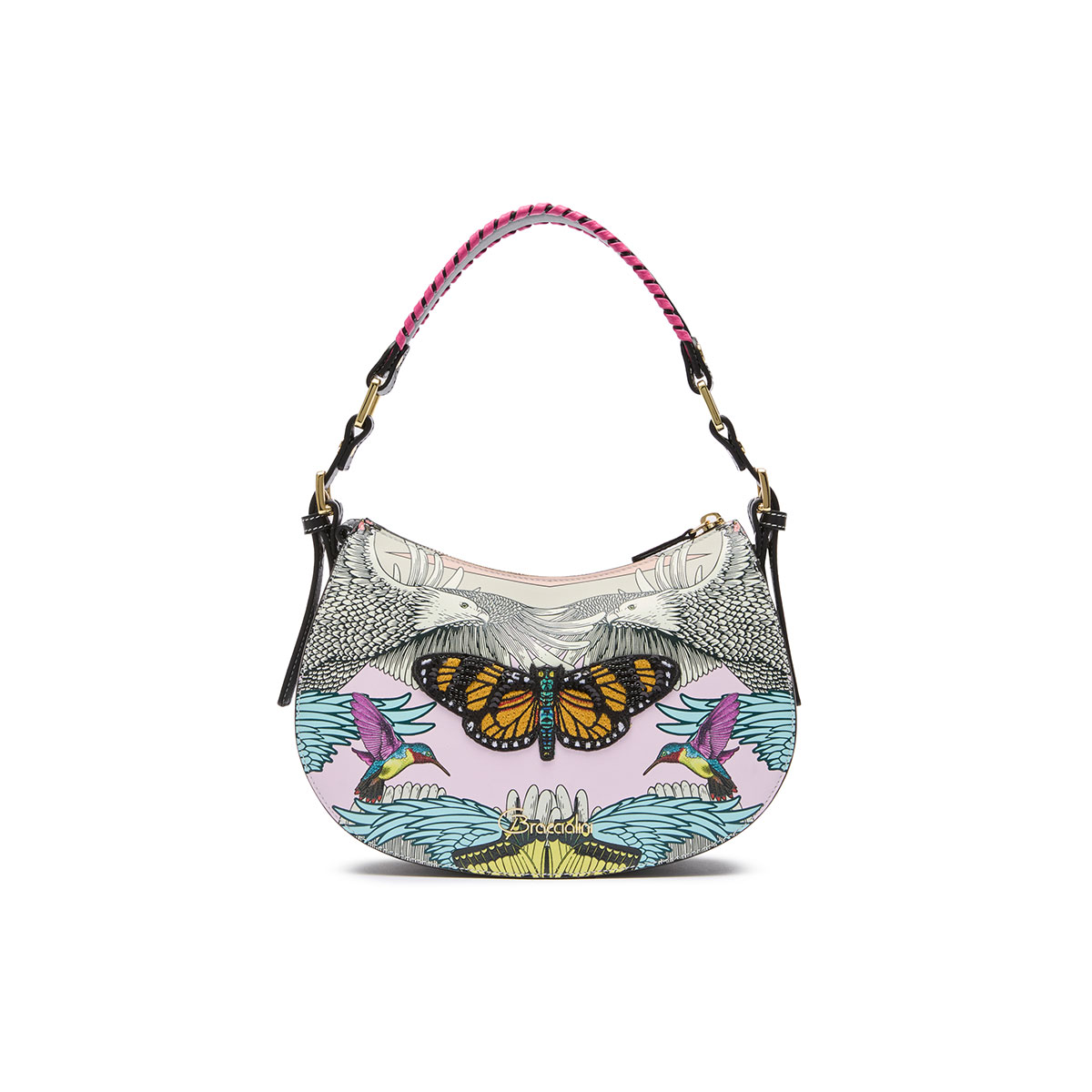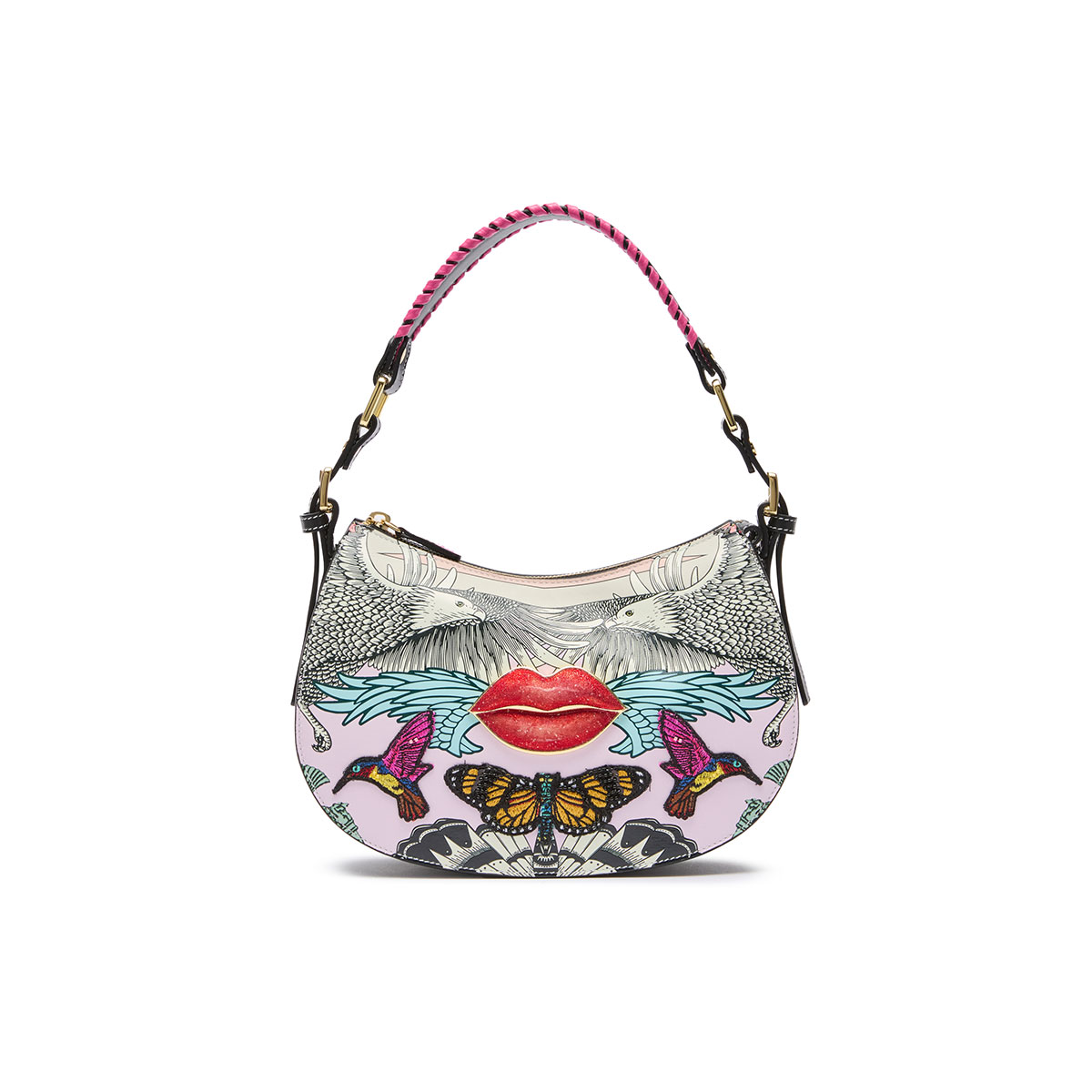 Ginevra ist die halbstarre Beuteltasche von Graziella Braccialini – ein wahres Meisterwerk der Lederkunst. Die halbmondförmige Silhouette umfasst eine doppelte Flachfaltenkonstruktion mit gerippter Kante, die die zentrale Form stabilisiert. Der Reißverschluss mit geformten Endstücken öffnet sich und gibt Zugang zu drei separaten Taschenfächern. Der mittels seitlicher Schnallen verstellbare Schulterriemen ist zudem mit einem ergonomisch geformten Schulterpolster veredelt. |