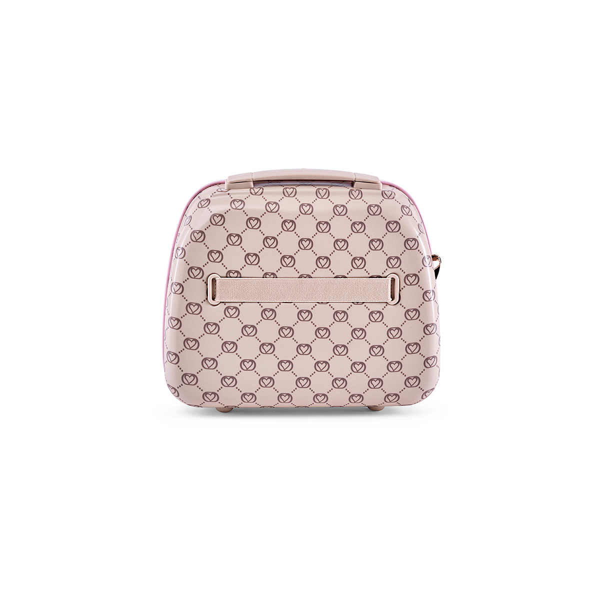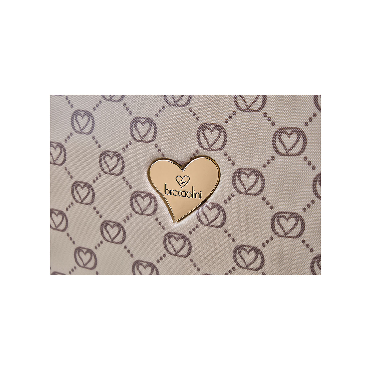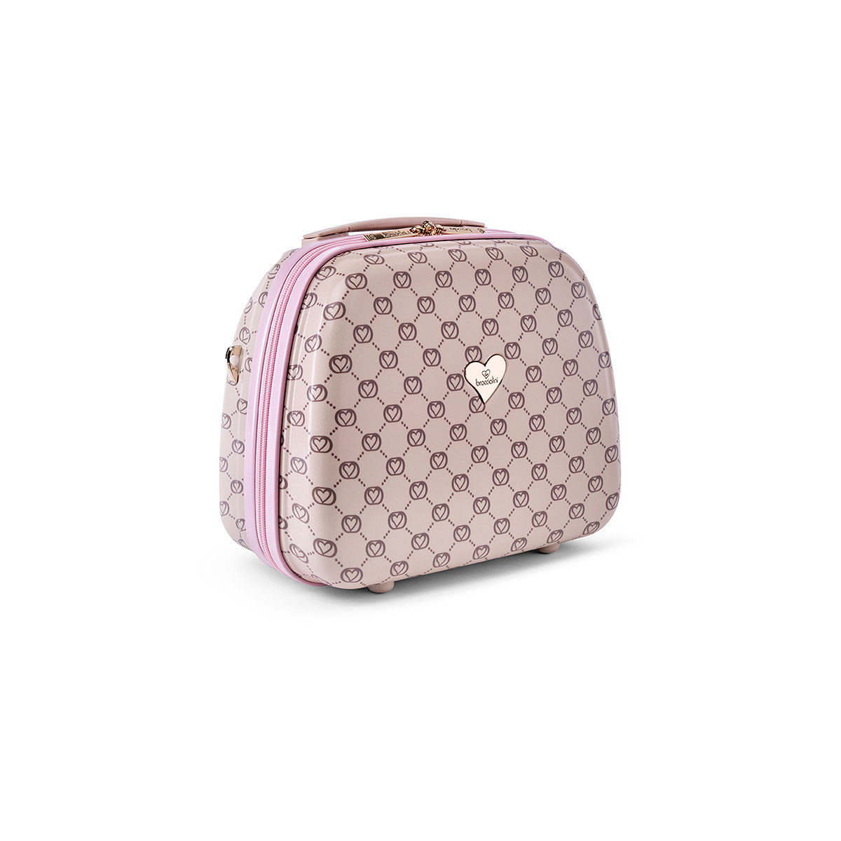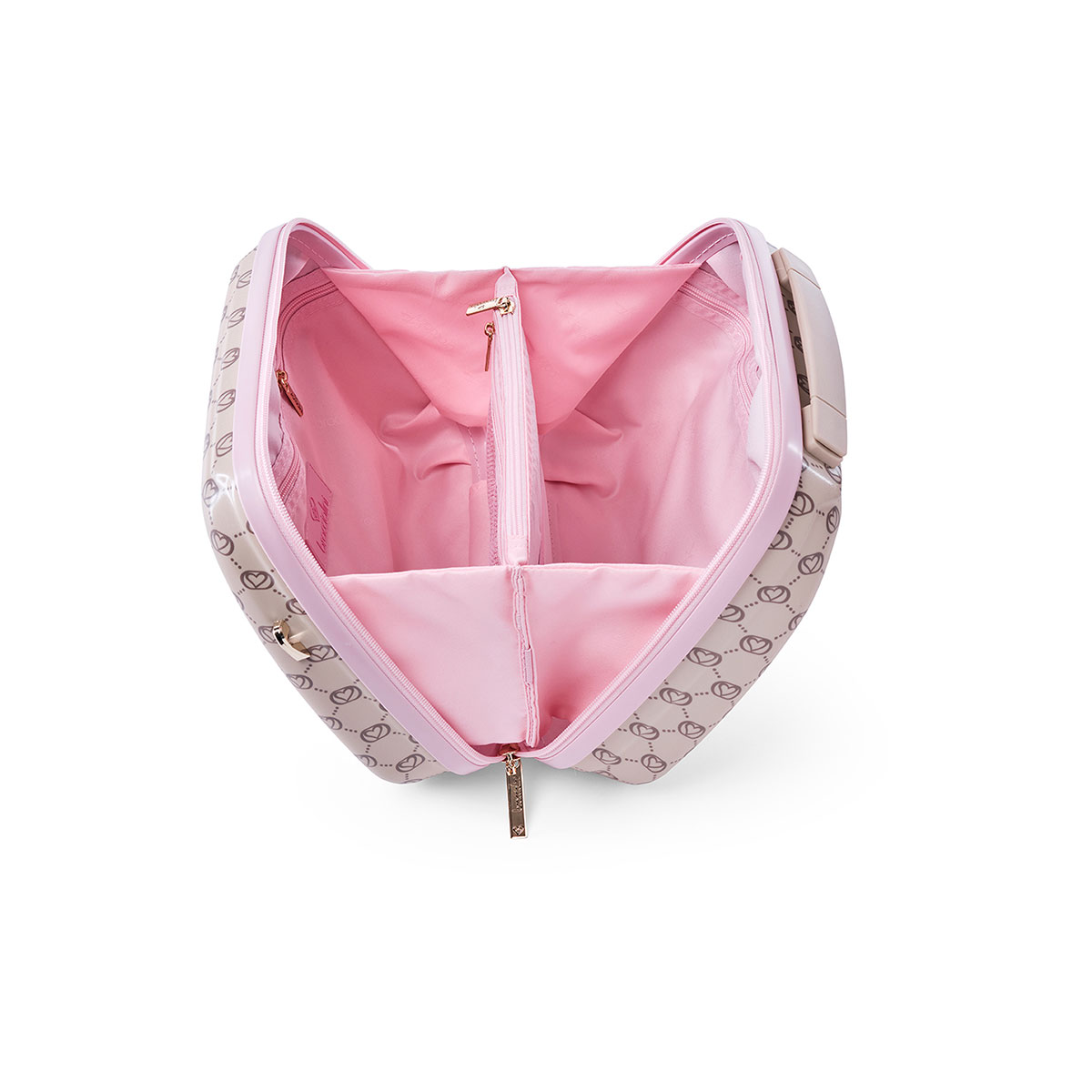 Kompakt, raffiniert und unglaublich praktisch — der Braccialini Monogram Beauty Case vereint zarte Rosatöne und goldene Details zu einem sophistizierten, femininen Look. Das Braccialini-Herzchen, das unverwechselbare Symbol der Marke, wird zum Protagonisten eines eleganten Allover-Druckmusters, das die gesamte Oberfläche ziert und die ikonische Identität der Kollektion unterstreicht. Aus robustem Hartmaterial gefertigt, verfügt er über einen Doppelreißverschluss für Sicherheit und Komfort. Das übersichtliche Innenfach ermöglicht ein ordentliches Verstauen von Kosmetik und Accessoires — perfekt für jede Reise. Komplett mit einem rosa Gummi-Kofferanhänger und einem Schutzbeutel, ideal als Ergänzung zu den koordinierten Trolleys.
