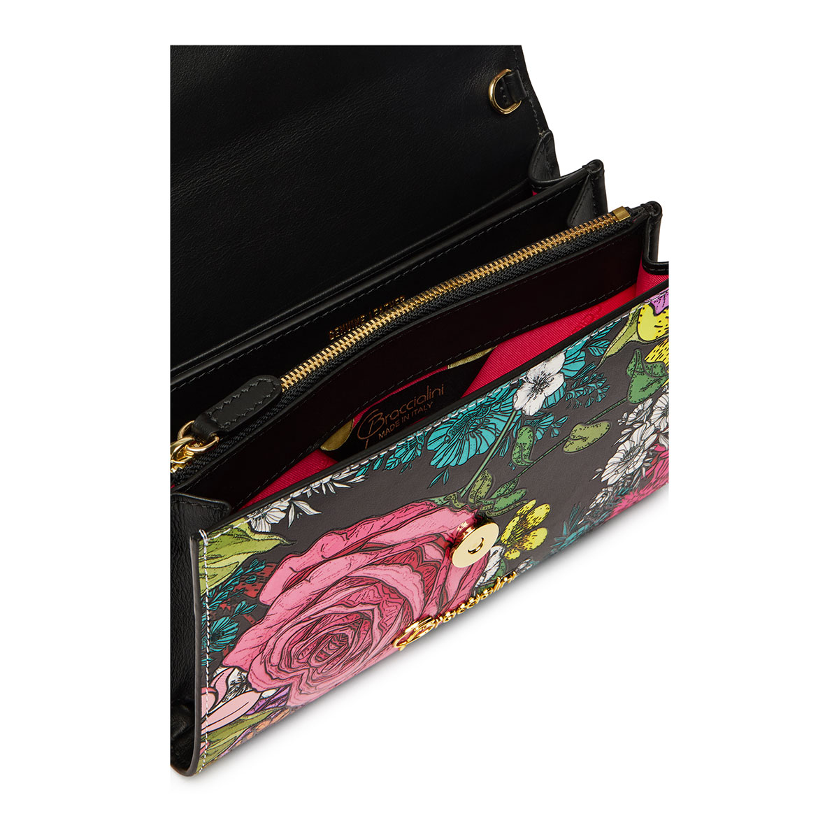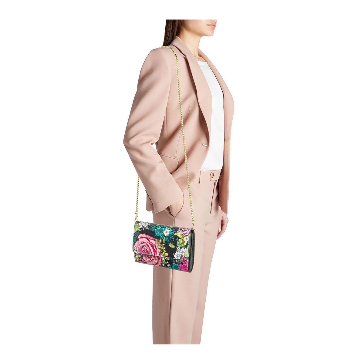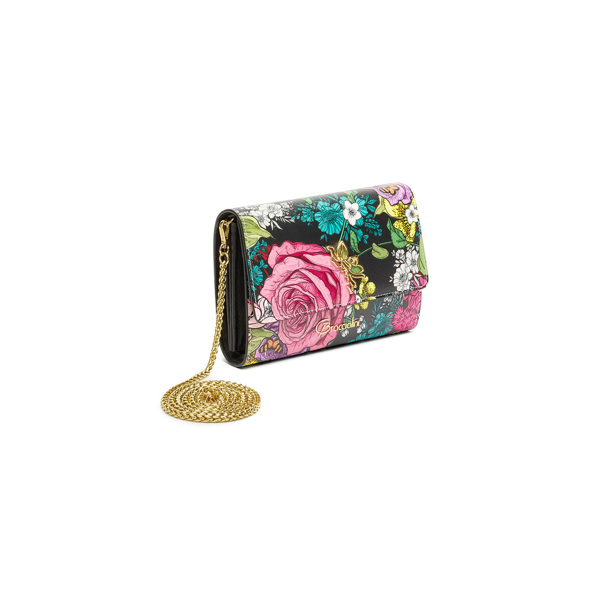 Eine raffinierte, zugleich extravagante Clutch mit Schulterriemen aus goldfarbener Kette, Innenaufteilung in mehrere Fächer und kontrastierendem Futter, das den modischen Charakter betont. Ideal für besondere Anlässe, aber auch für den klassischen Aperitivo: Dank des zentralen Metall-Accessoires an der Überschlagklappe sowie der Prints und Stickereien, die alle Seiten zieren, wird Lady zu einem Schmuckstück, auf das man nicht verzichten möchte. |