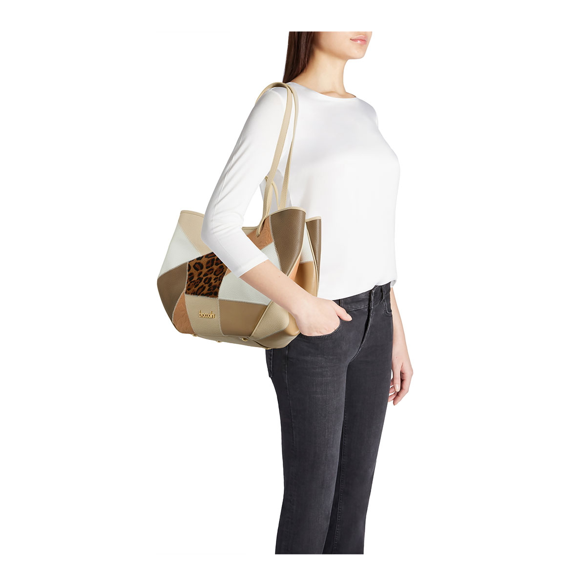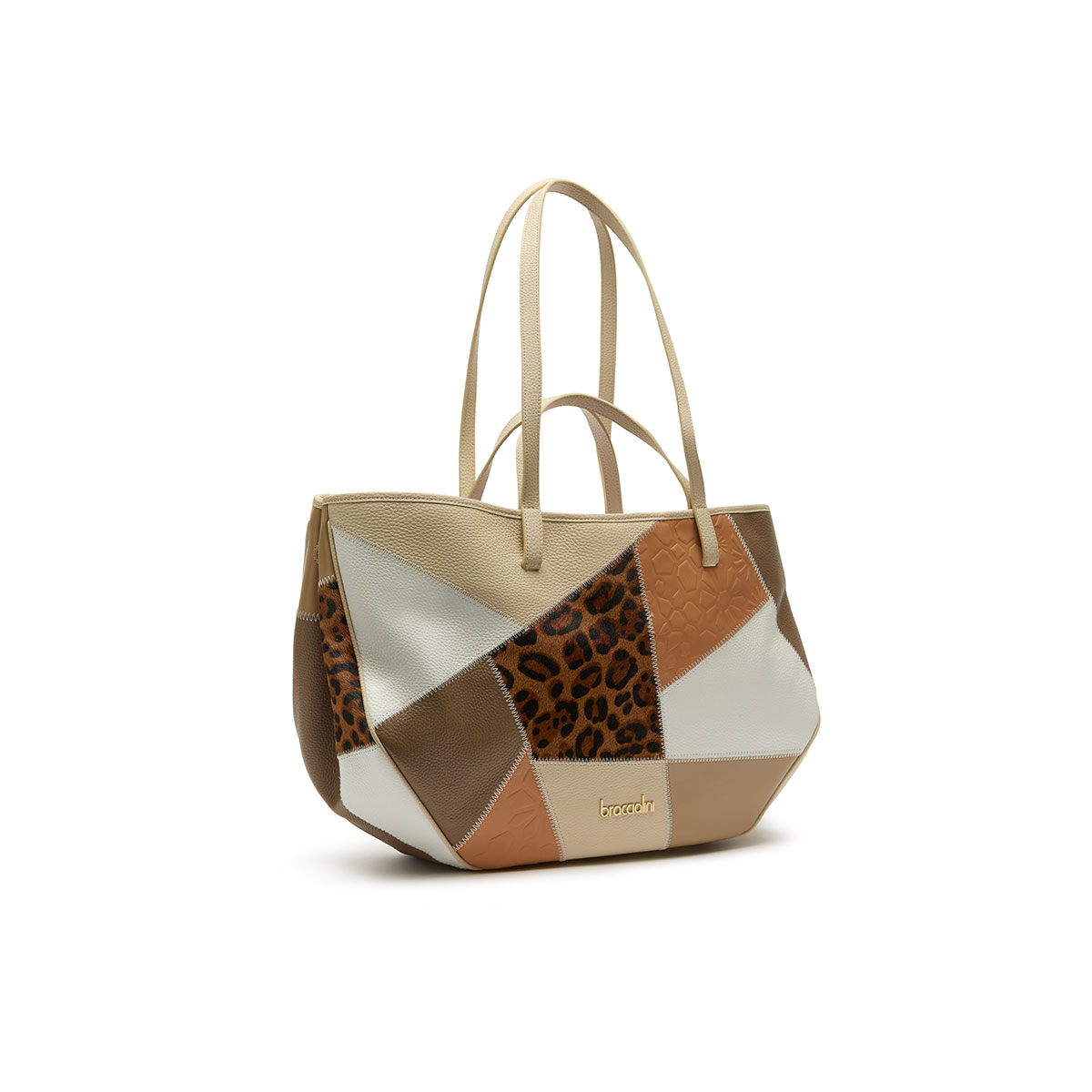 La linea Patch è un omaggio alla storicità e all’estro creativo che da sempre definiscono il DNA di Braccialini. In questa collezione, la pelle diventa protagonista di un mosaico d'eccellenza: diversi pellami pregiati vengono accostati con maestria artigianale per dar vita a uno stile unico e inconfondibile. Le calde tonalità della terra si fondono armoniosamente con audaci accenti leopardati, creando un equilibrio perfetto tra eleganza naturale e spirito wild |