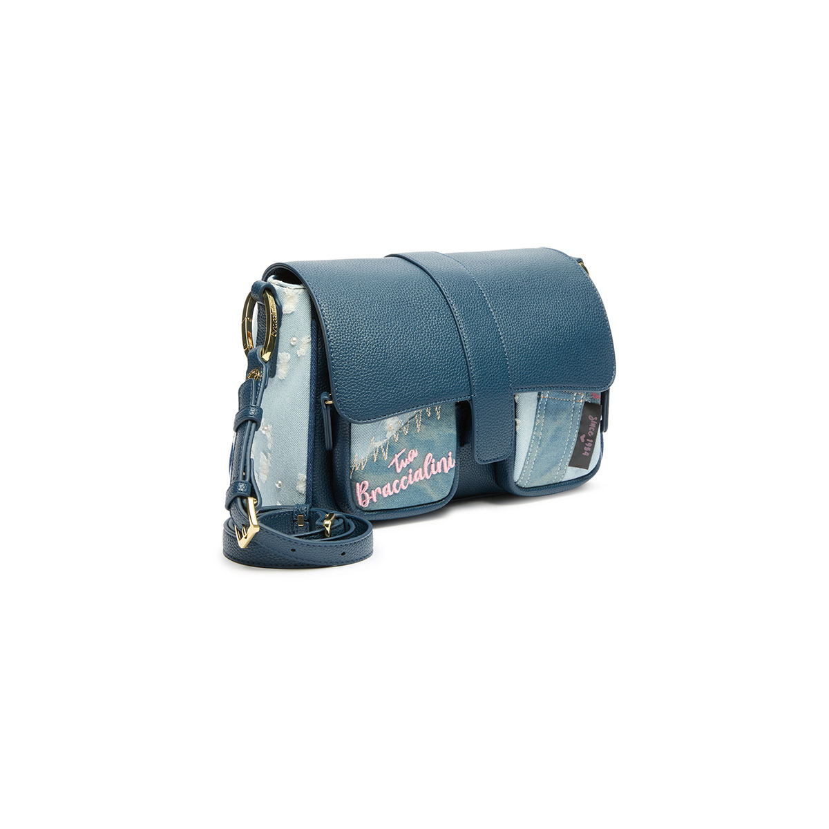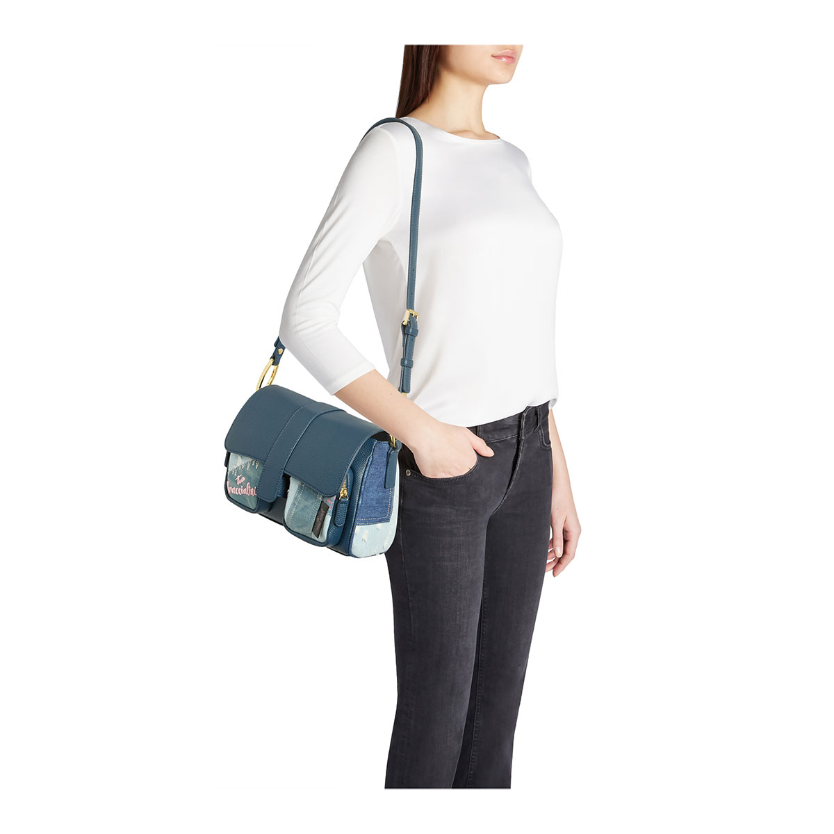 This crossbody reinvents itself in a Patch Jeans mood, celebrating the world’s most-loved fabric through a play of textures and indigo shades. The mix of denim-effect fabric and faux-leather details creates a fascinating, modern contrast of materials. The double front pocket and flap closure complete an iconic design, made for those who take on the city with attitude and want an accessory that tells a story of authentic, timeless style.