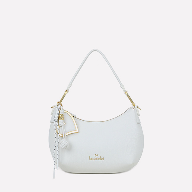 Black leather shoulder bag with soft, refined lines. The gold-tone jeweled heart, featuring a double little-heart detail and a decorative twisted cord, adds a romantic touch to a style with strong personality. Complete with an adjustable, detachable shoulder strap, it’s designed to accompany you with style on any occasion.
