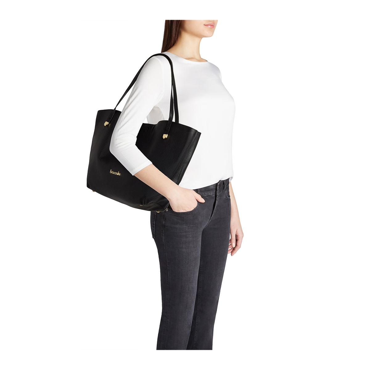 Shopper aus weichem Leder in Dollarino-Optik in Schwarz. Die weichen Linien und das großzügige Volumen machen sie zum idealen Begleiter für den Alltag und verleihen ihr eine elegante und dezente Ausstrahlung. Die langen Doppelhenkel ermöglichen ein bequemes Tragen über der Schulter. Im Inneren befindet sich eine praktische, herausnehmbare Pochette zur sicheren Aufbewahrung wertvoller Gegenstände. Ein raffiniertes, leichtes und geräumiges Modell für alle, die eine praktische Tasche mit romantischem Charakter suchen.