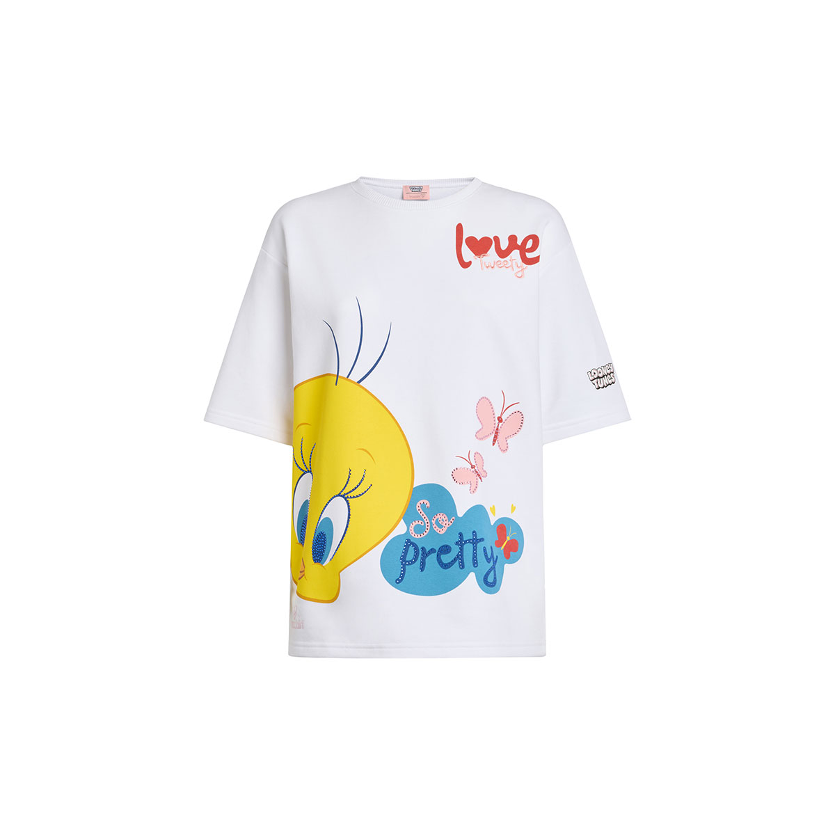 The Looney Tunes T-shirt adds a casual, fun vibe to your look, blending fashion with iconic cartoon characters. A feminine fit, refined details and exclusive prints make this tee a one-of-a-kind piece—perfect for bringing a pop, carefree touch to your everyday wardrobe.