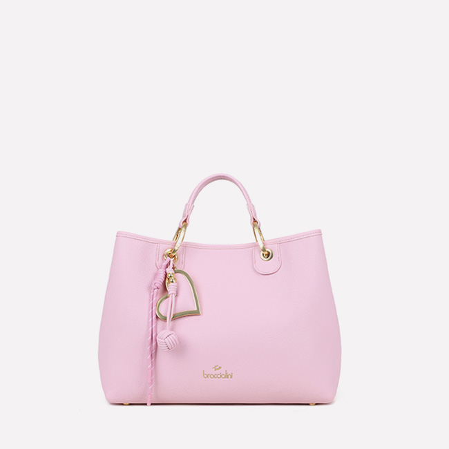 Leather handbag with a compact, feminine silhouette. The structured shape and clean design are elevated by gold-tone details such as the front logo plaque. Finished with a detachable, adjustable shoulder strap, the flap closure with magnetic button protects a well-organized interior with double compartments and pockets. A chic, sophisticated accessory, perfect for completing any look with elegance, from day to night.
