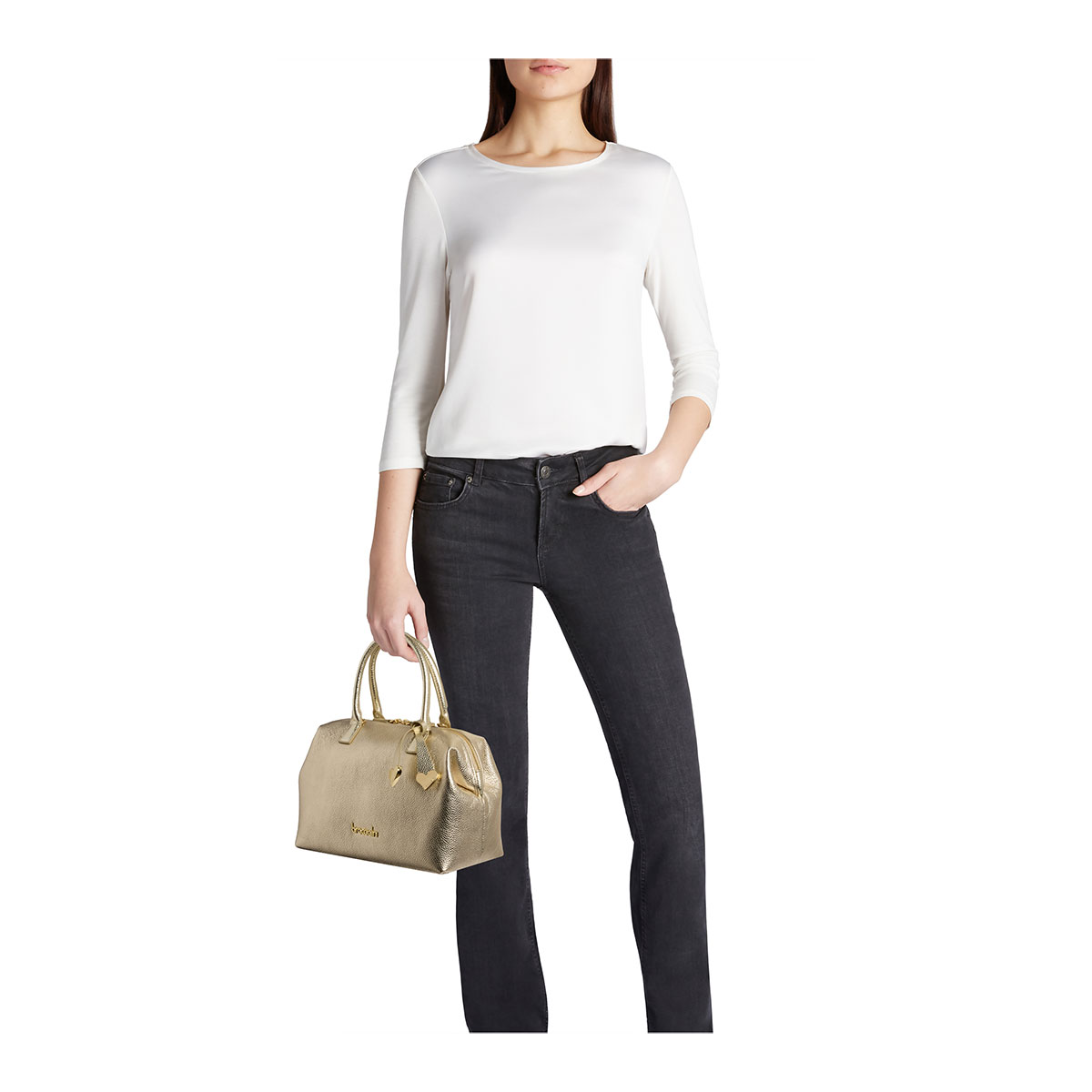 Michelle is a line with an elegant, feminine design, crafted in soft dollar-grain calfskin. Its rounded lines and side gussets add structure and volume, while the front flap is embellished with an exclusive gold-tone turn-lock featuring an engraved logo. The line includes five models, offered in a wide range of colours, perfect for refining both daytime and evening looks with effortless sophistication. |