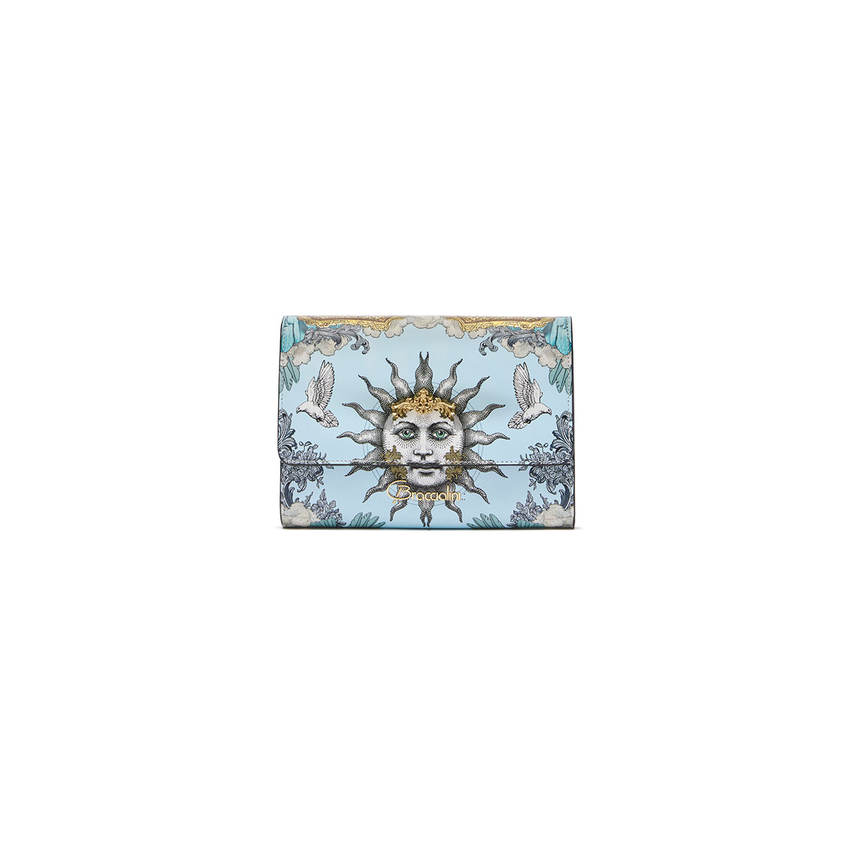 A sophisticated yet eccentric clutch with a gold chain shoulder strap, a compartmentalized interior, and a contrasting lining to highlight its fashion-forward appeal. Perfect for special occasions as well as the usual aperitivo: thanks to the central metal accessory on the flap and the prints and embroidery that brighten every side, Lady becomes a piece of jewellery you won’t be able to do without. |