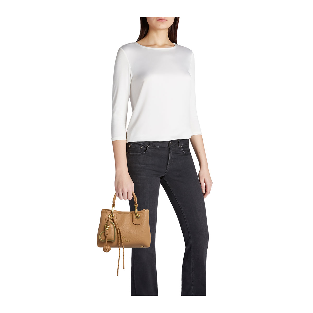 The iconic Beth line is refreshed with bold details and luminous accents: its classic silhouette introduces a new removable multi-strand maxi charm with a satin-finish gold metal heart, coordinated with the bag. The shapes remain soft and contemporary, featured across half-moon hobo styles, backpacks and mini bags, all available in the season’s colors for a timeless look that always feels current. |