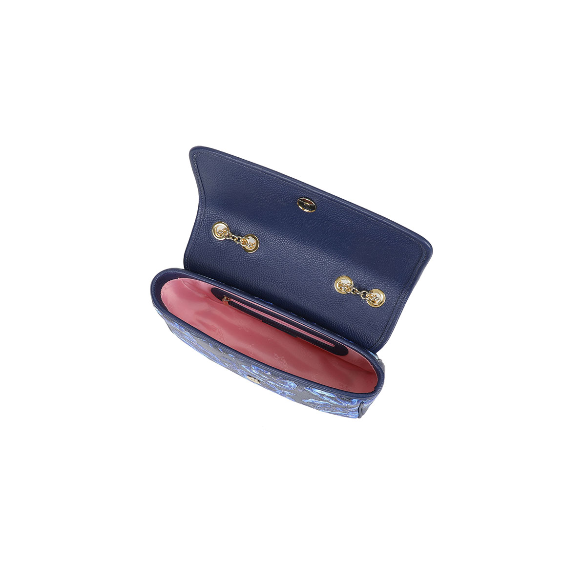 Some blooms appear only under moonlight. The Flower line is born from this vision: a leather symphony of elegance where the depth of midnight blue meets the magnetic vibrancy of electric-blue flowers. Each panel of the bag becomes a nocturnal meadow, where embroidery and color seem to glow with a light of their own. |