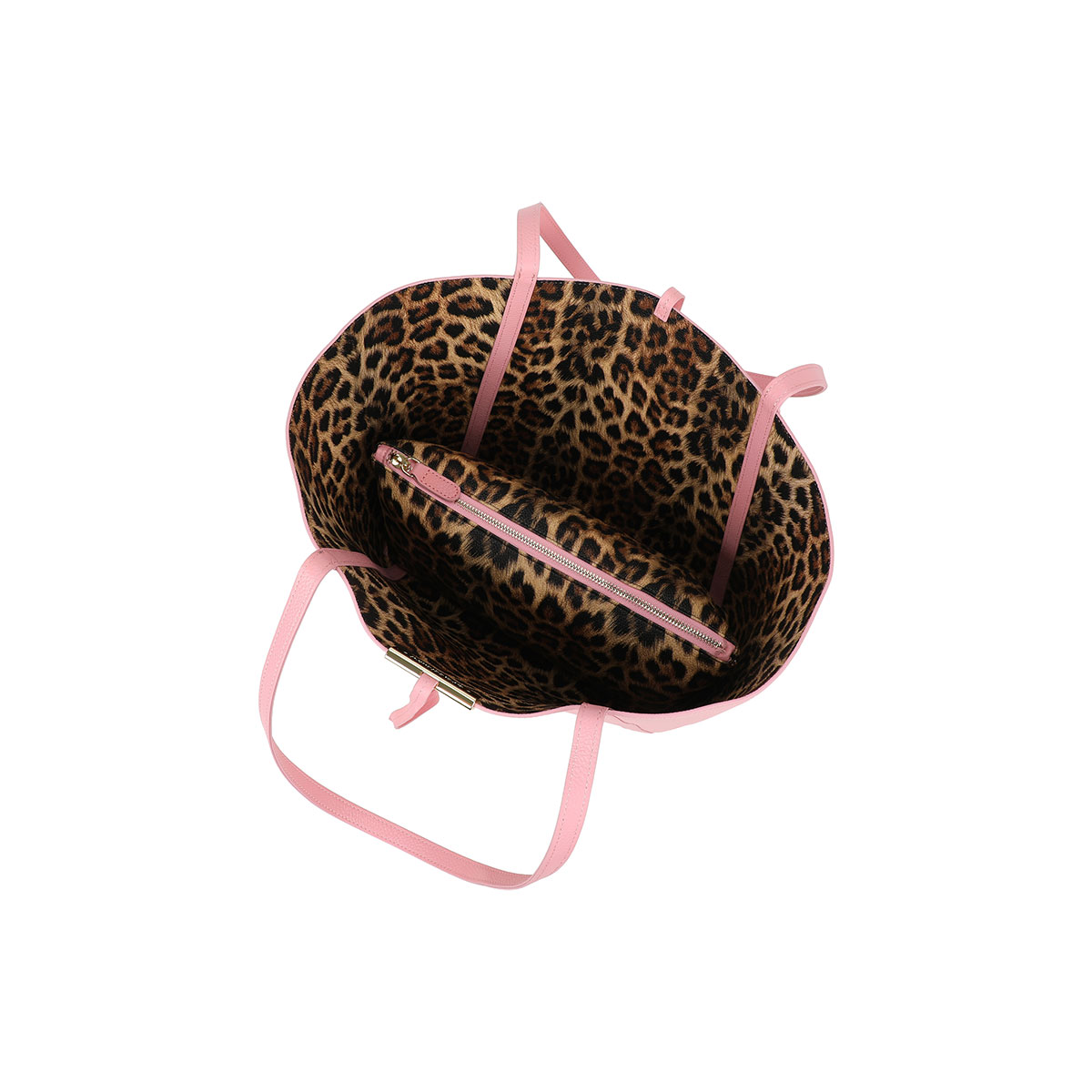 Tu nuevo “imprescindible”: la shopper que juega con los contrastes. Sobria por fuera, salvaje por dentro. Nuestra nueva shopper de piel rosa es la síntesis perfecta del lujo contemporáneo. Si el exterior habla de una sofisticación minimalista y chic, el interior leopardado añade ese toque wild que no pasa desapercibido.