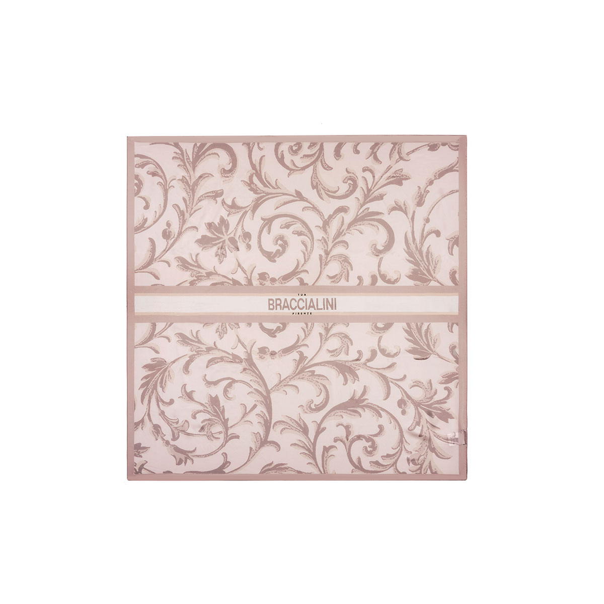 Fular confeccionado en tejido de poliéster efecto seda sobre el que destaca un estampado con un motivo barroco.