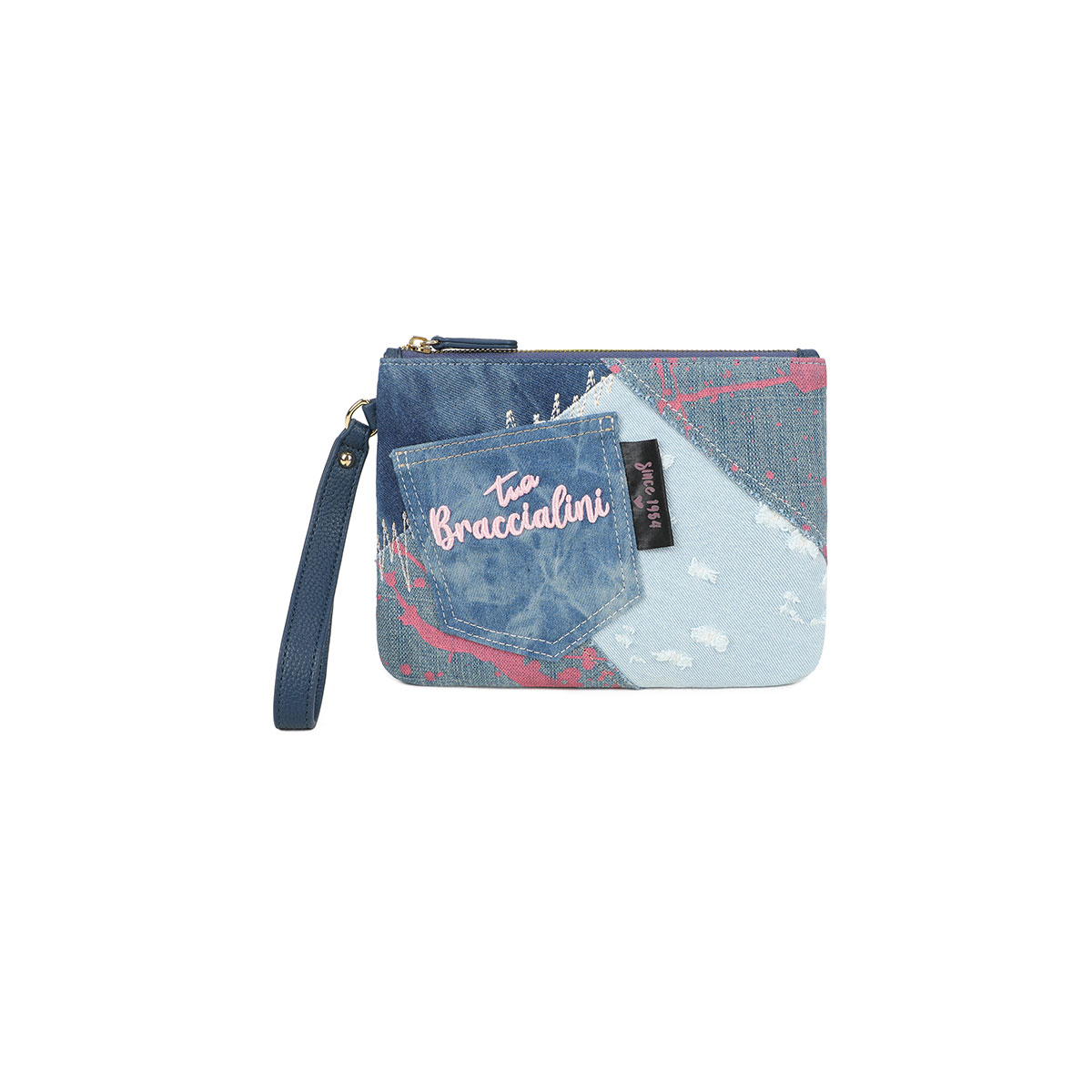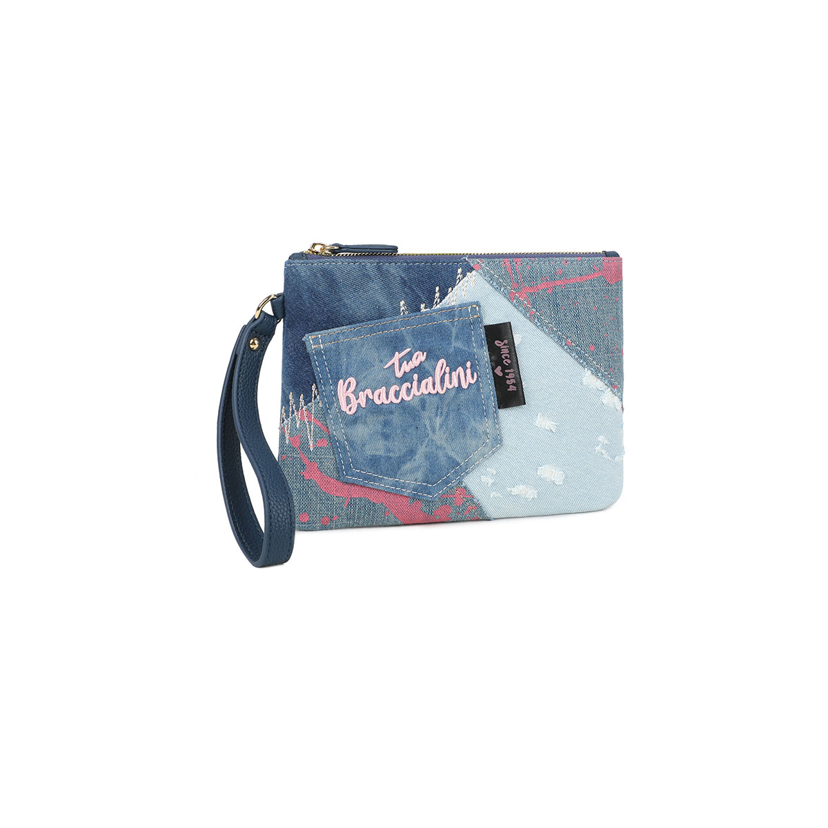 Pochette en simili cuir et tissu, parfaite comme bag-in-bag pour organiser ton sac ou comme clutch au poignet pour un look du soir épuré et sophistiqué.