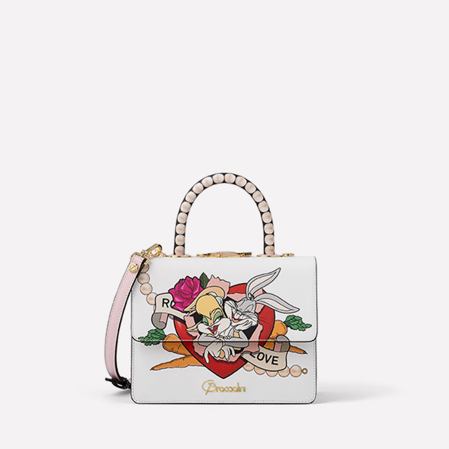 Sac à main blanc en cuir effet autruche, au design structuré et aux lignes sophistiquées avec une fermeture à rabat magnétique qui ajoute une touche de classe au sac. Double anse et bandoulière amovible et ajustable, qui permet de le porter de deux manières différentes.