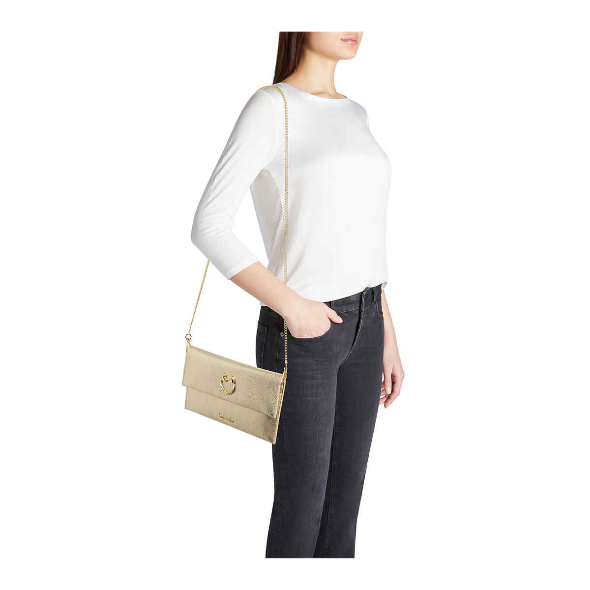 Petites, mais pleines de caractère : la ligne Dolly interprète avec polyvalence l’esprit féminin contemporain. Une collection de mini bags pensées pour toutes les occasions, du look quotidien aux cérémonies, grâce à des formes compactes et fonctionnelles. Réalisées en cuir souple grain dollarino, elles sont disponibles en neuf coloris, dont une version léopard au tempérament affirmé. Le design épuré est rehaussé de détails lumineux, comme la chaîne dorée ou les doubles charms cœur, qui apportent une touche glamour même au modèle le plus essentiel. |