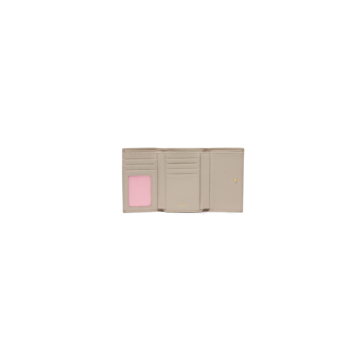Portefeuille continental moyen en cuir coloris gris avec logo doré en relief.