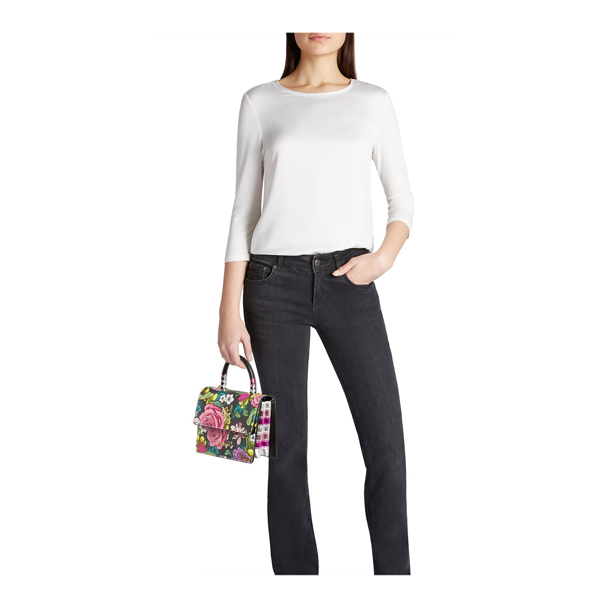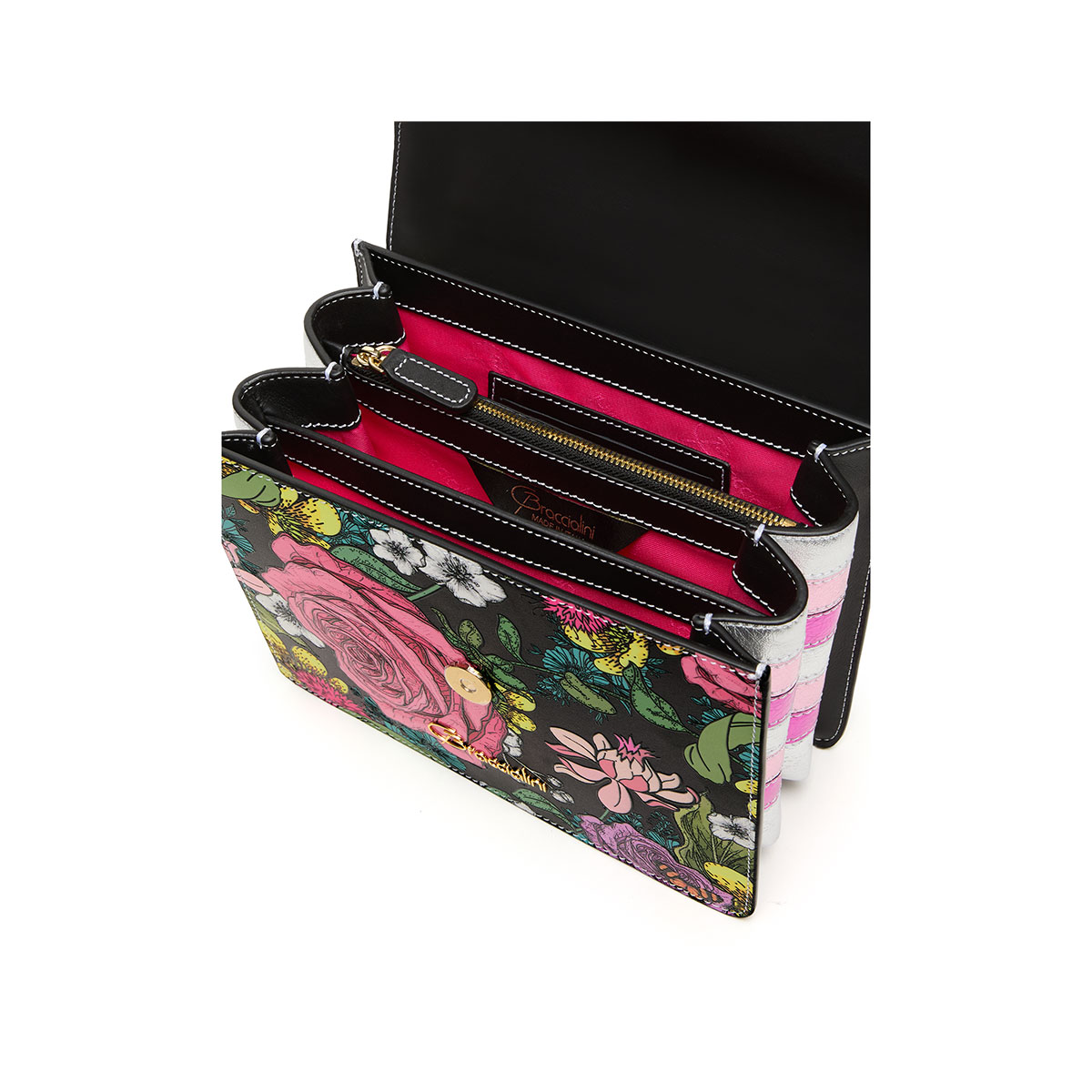 Raffinement et vivacité se rencontrent dans l’Audrey Fleurs : un sac en cuir noir dominé par une somptueuse rose fuchsia et des détails en relief. Les côtés en cuir brillant effet craquelé, dans des nuances d’or et de bronze, apportent une touche précieuse et contemporaine. Polyvalent et romantique, il est doté d’une bandoulière amovible pour vous accompagner avec style du jour au soir.