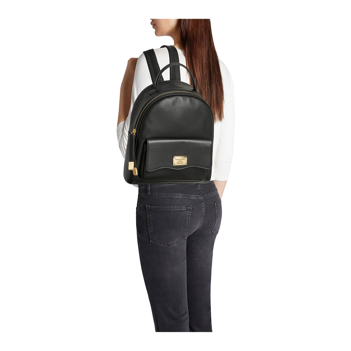 Sac à dos en cuir au design compact et moderne, idéal au quotidien. Il est doté d’une poche frontale à rabat, d’une double fermeture zippée avec tirettes en cuir et d’une plaque logo dorée. Les bretelles réglables et l’intérieur spacieux avec poches le rendent pratique et polyvalent, parfait pour une féminité dynamique et contemporaine.