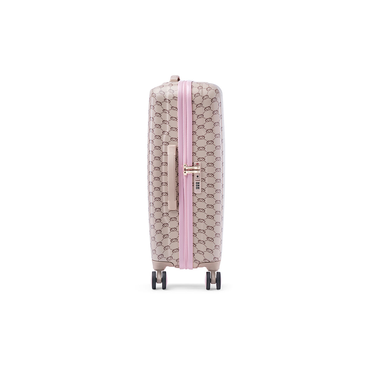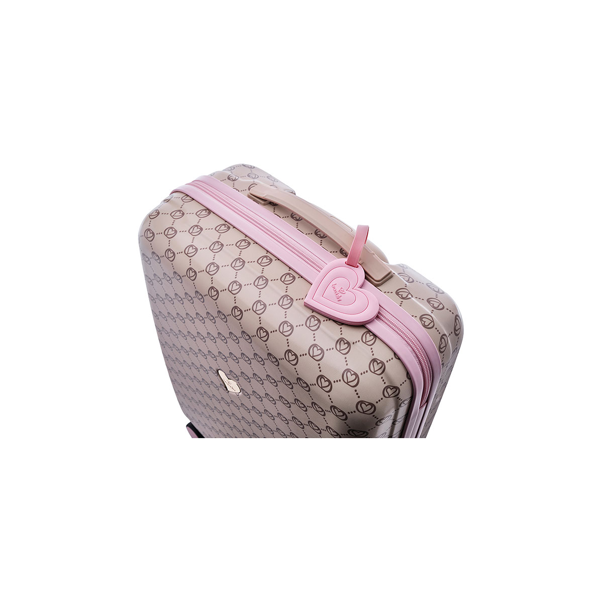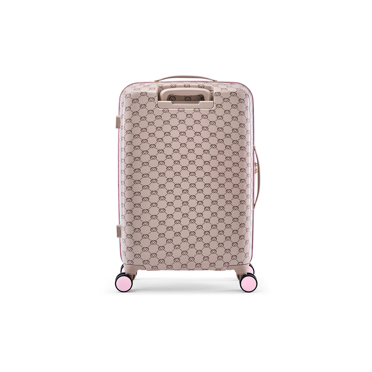 Voyagez avec style grâce au trolley moyen rigide Braccialini, un accessoire raffiné et pratique pour celles qui aiment se démarquer. Le petit cœur Braccialini, symbole distinctif de la maison, s'impose comme le protagoniste d'un élégant motif imprimé qui orne toute la surface, créant une fantaisie Monogram délicate et féminine, sublimée par le logo cœur en évidence. Doté d'une fermeture plate à combinaison TSA avec zip extensible pour augmenter le volume, il est équipé d'une poignée télescopique réglable et de quatre roulettes multidirectionnelles à 360° pour un déplacement fluide. L'intérieur organisé avec double compartiment et sangles de maintien des vêtements permet de garder tout en ordre durant le voyage. Le modèle est complété par une étiquette de bagage coordonnée et une housse de rangement.