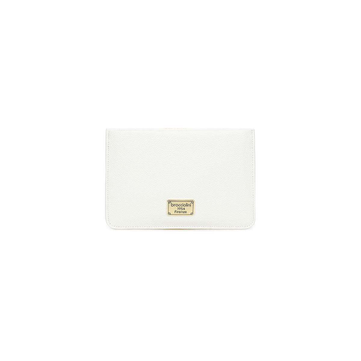 Bustina piatta piccola in pelle color bianco dal design essenziale e intramontabile. Caratterizzata da una pratica chiusura con zip dorata e laccetto laterale, è impreziosita dal logo Braccialini applicato su placca dorata frontale. Compatta ma capiente, è ideale per custodire con stile gli oggetti indispensabili, sia all'interno di una borsa più grande che portata a mano. Un accessorio pratico e raffinato, perfetto per accompagnarti con eleganza in ogni momento della giornata.