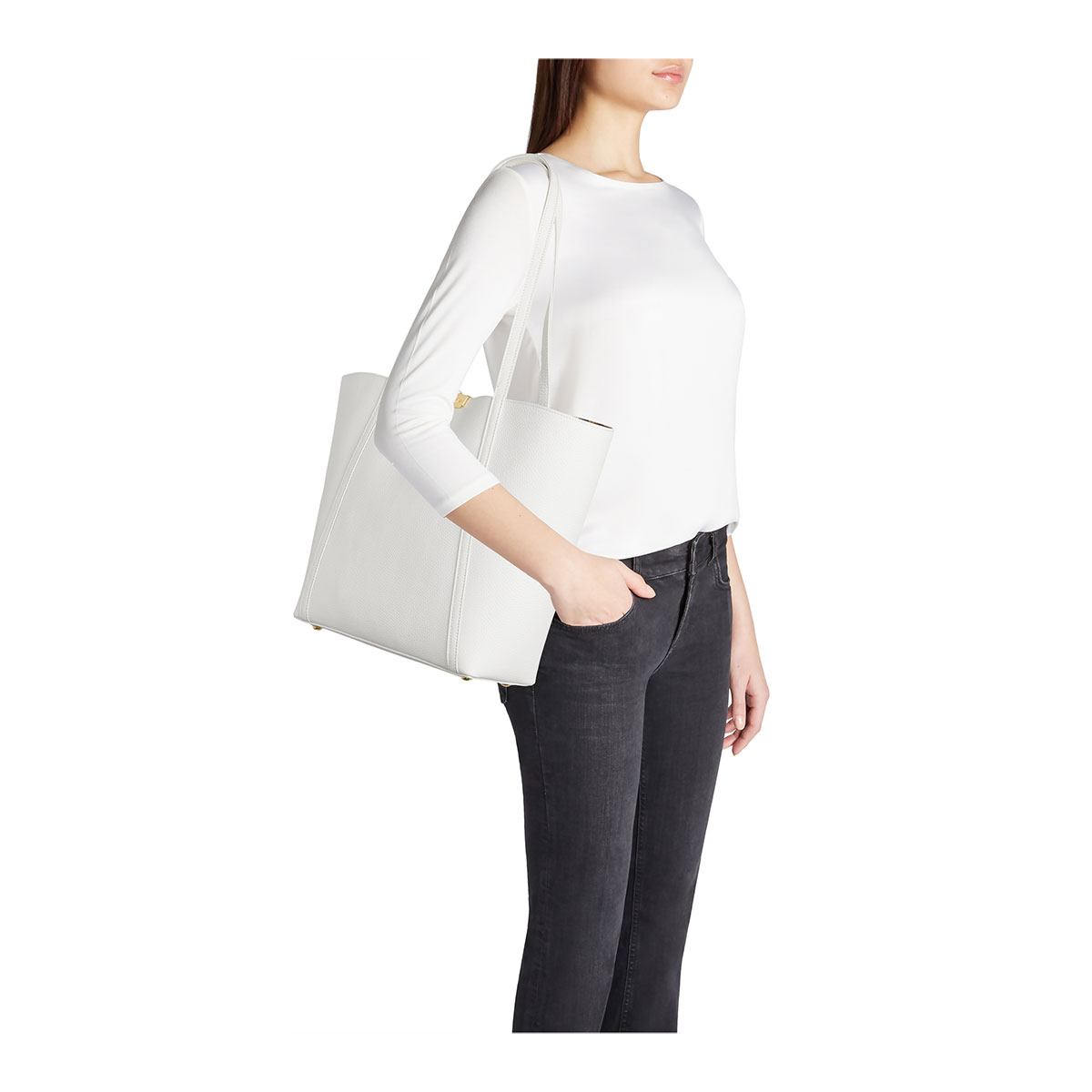 Il tuo nuovo 'mai più senza': la shopper che gioca con i contrasti. Sobria fuori, ruggente dentro. La nostra nuova shopper in pelle color bianco è la sintesi perfetta del lusso contemporaneo. Se l'esterno parla di una raffinatezza minimale e chic, l'interno leopardato aggiunge quel tocco wild che non passa inosservato