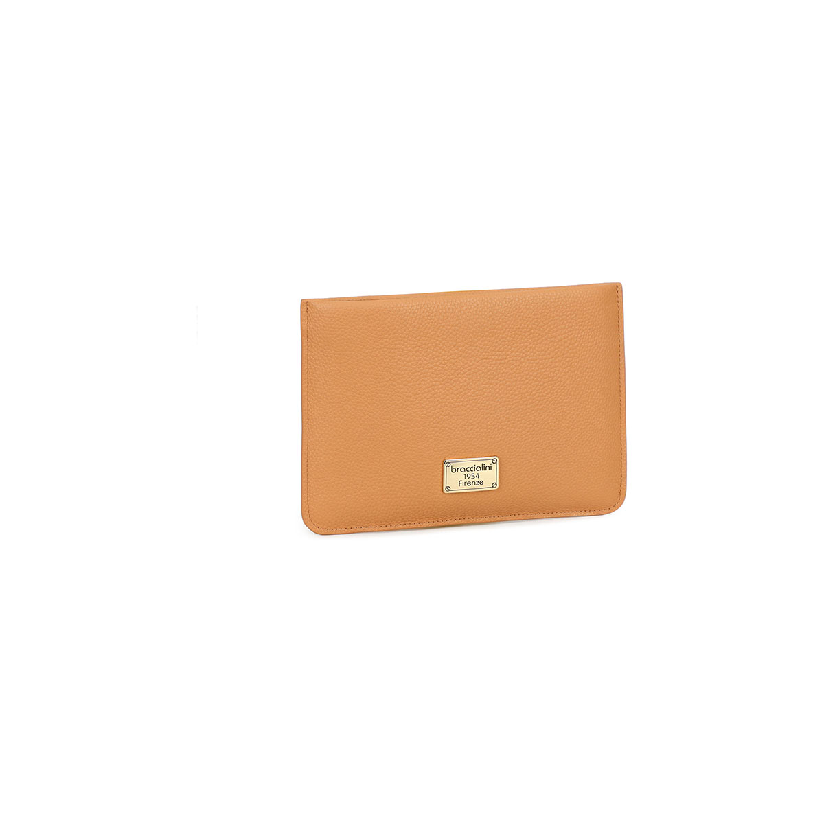 Bustina piatta piccola in pelle color biscotto dal design essenziale e intramontabile. Caratterizzata da una pratica chiusura con zip dorata e laccetto laterale, è impreziosita dal logo Braccialini applicato su placca dorata frontale. Compatta ma capiente, è ideale per custodire con stile gli oggetti indispensabili, sia all'interno di una borsa più grande che portata a mano. Un accessorio pratico e raffinato, perfetto per accompagnarti con eleganza in ogni momento della giornata.