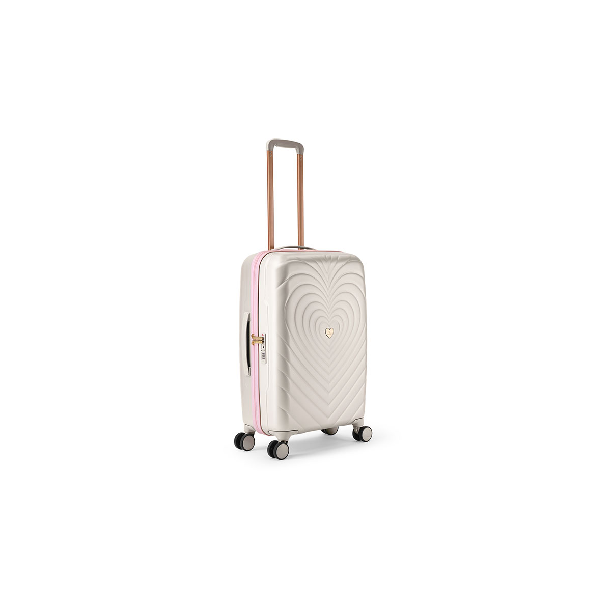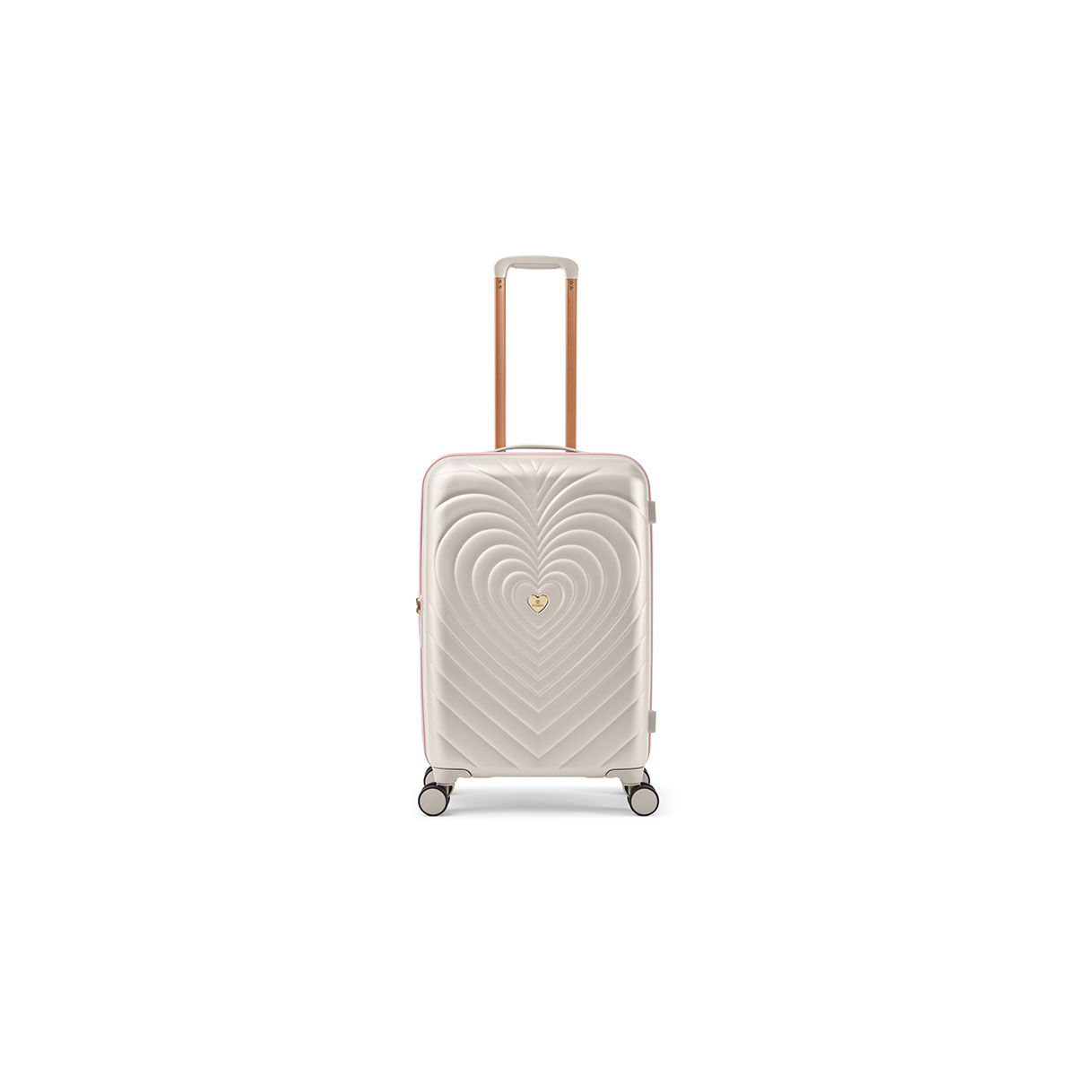 Viaggia con stile con il trolley medio rigido Braccialini, un accessorio raffinato e pratico per chi ama distinguersi. Il design sabbia sofisticato è impreziosito da una lavorazione a rilievo con motivo a cuore che dona volume, carattere e un tocco romantico all’intera silhouette. La chiusura piatta a combinazione con TSA e la zip espandibile assicurano praticità e sicurezza. Il manico telescopico regolabile con dettagli rosa aggiunge femminilità, così come le quattro ruote multidirezionali con rotazione a 360° che garantiscono un trasporto fluido. Gli interni, funzionali e ben organizzati, includono doppio divisorio ed elastici ferma abiti per ridurre pieghe e mantenere tutto in ordine. Completa il look il luggage tag a cuore in gomma rosa e la sacca riponi valigia coordinata.