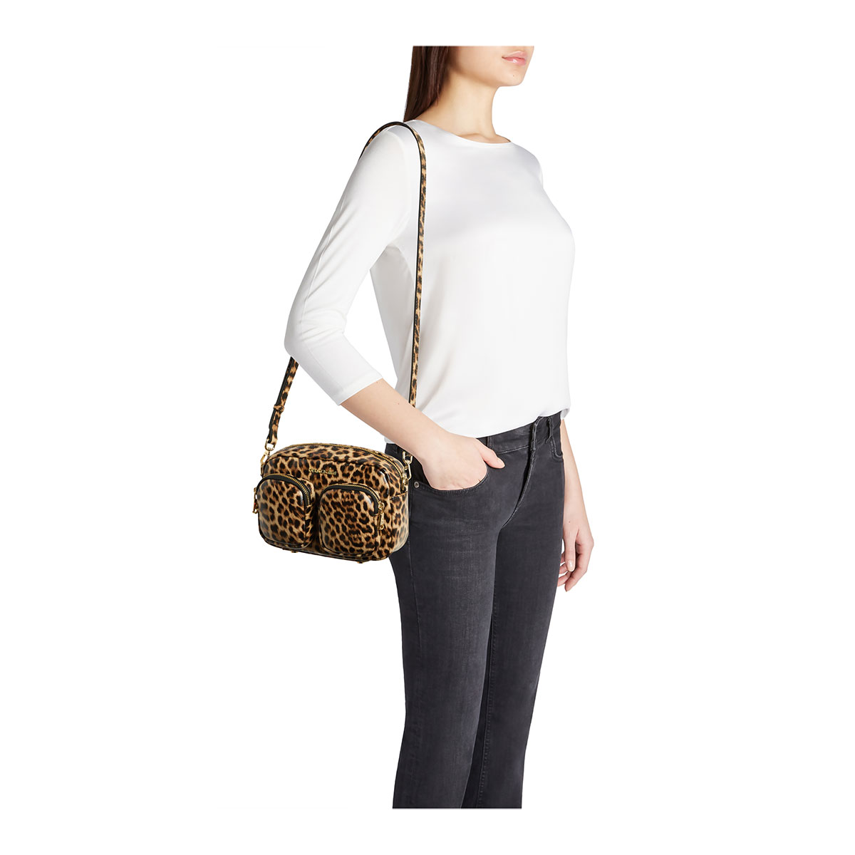 Borsa a tracolla in pelle con stampa leopardata dalla silhouette compatta e contemporanea. Il doppio taschino frontale con zip aggiunge un tocco grintoso e funzionale, rendendo il modello pratico e distintivo. La tracolla regolabile consente di portarla comodamente crossbody. Dotata di scomparto principale con zip e fodera a contrasto, è perfetta per contenere con ordine gli essenziali. Un accessorio moderno e versatile, ideale per dare luce a ogni look, sia daily che da sera.