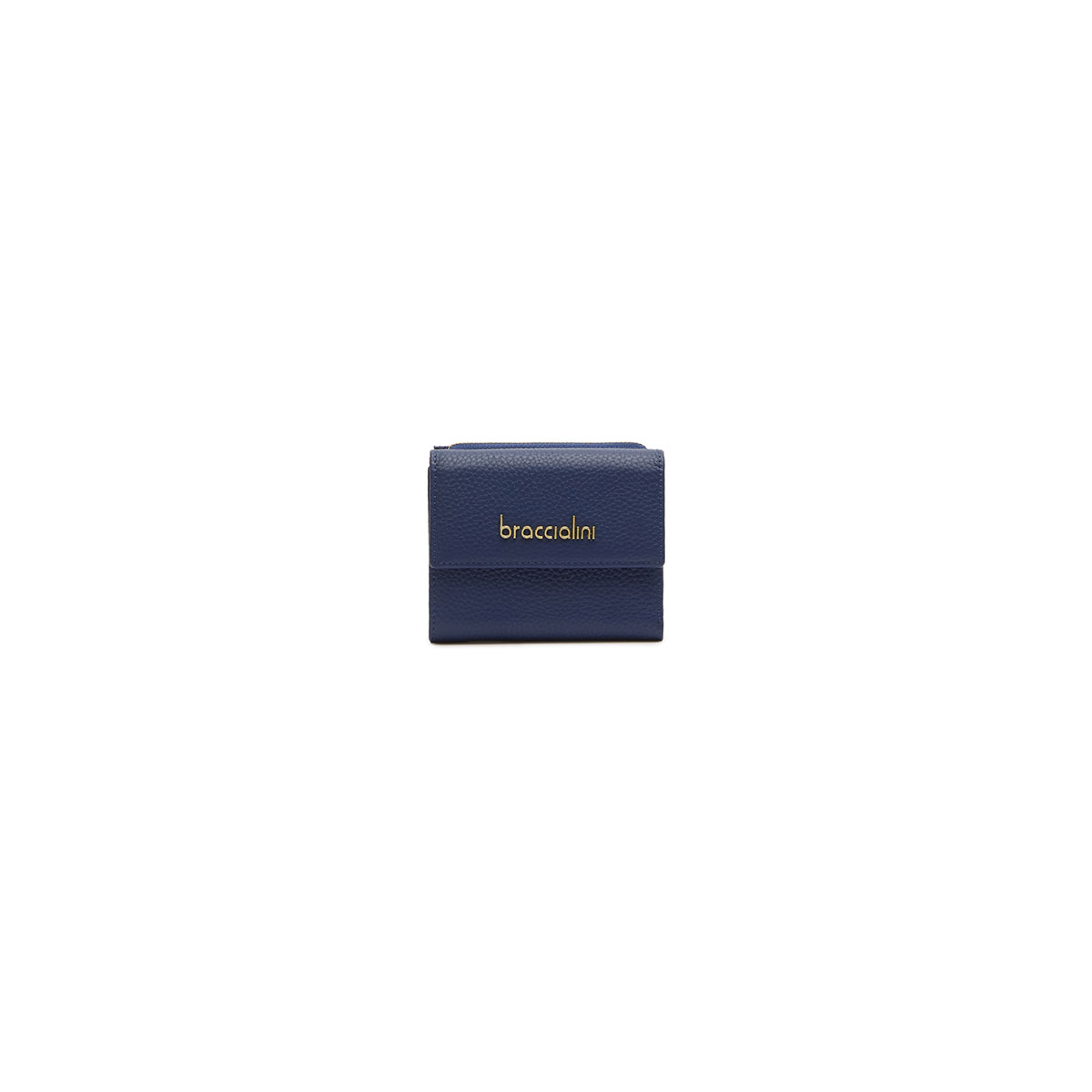 Маленький кошелёк Continental из кожи синего цвета с золотистым логотипом в тиснении.