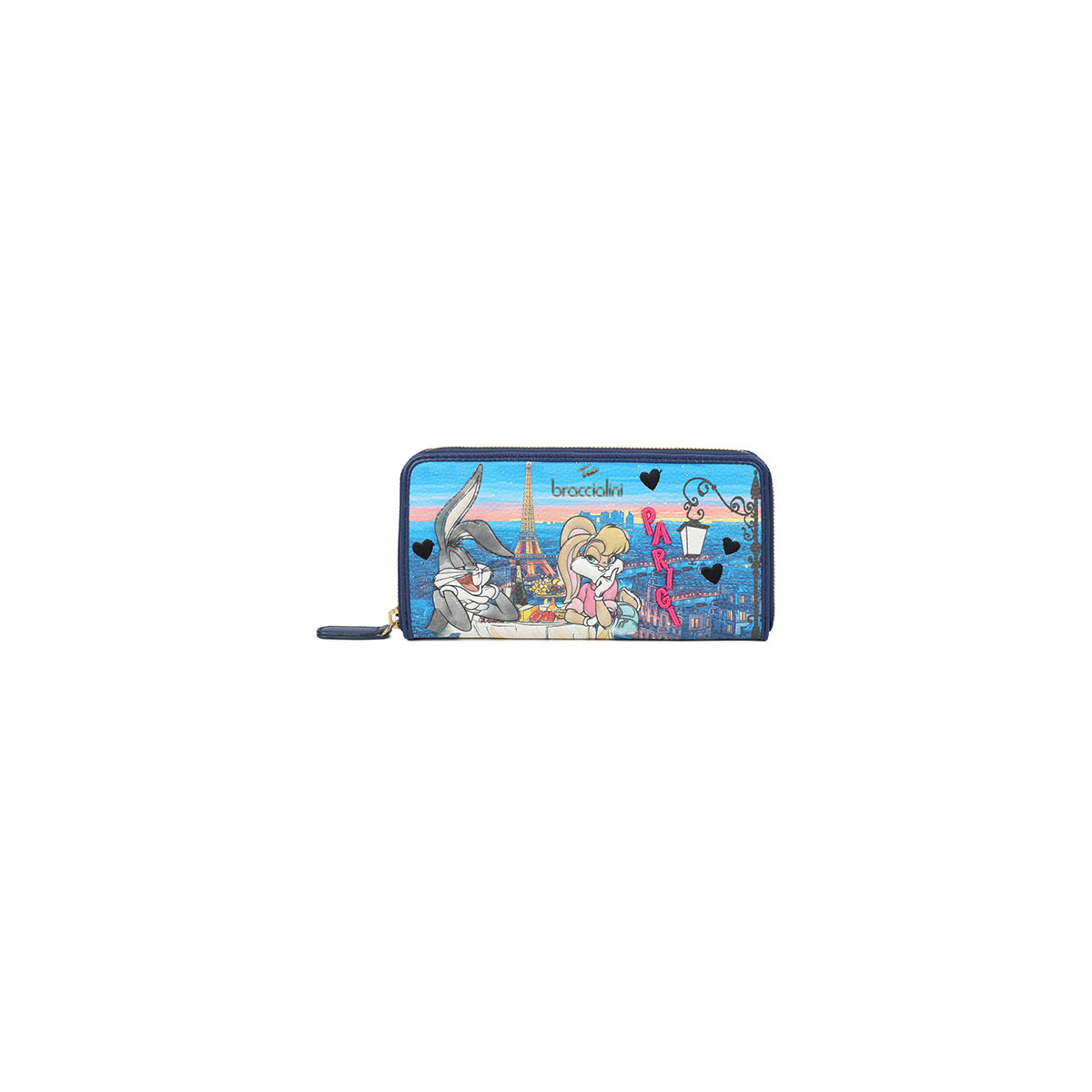 Кошелёк формата zip-around, украшенный романтичным принтом, вдохновлённым Парижем, где Багз Банни и Лола проводят трогательный момент перед Эйфелевой башней.