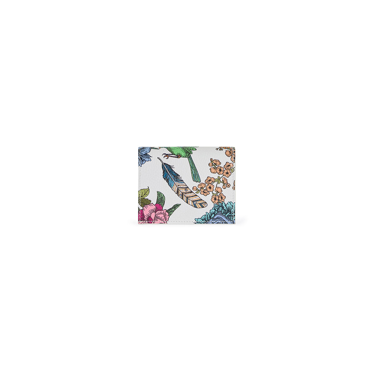 Кошелек мини из кожи с маленькой застежкой-клипсой и золотым логотипом. Внутренний карман для монет с застежкой-молнией. На панелях оживают сезонные принты.