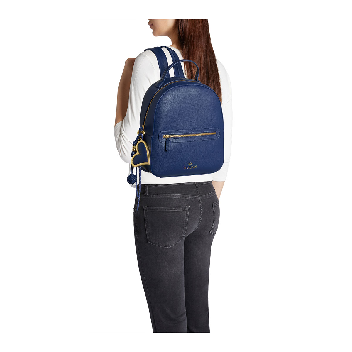 Компактный и функциональный рюкзак из экокожи, дополненный съёмным макси-брелоком с сатинированным золотистым сердцем и завязанными шнурками. Регулируемые лямки и внешние карманы на молнии объединяют стиль и практичность, чтобы сопровождать вас в каждом движении в течение дня.